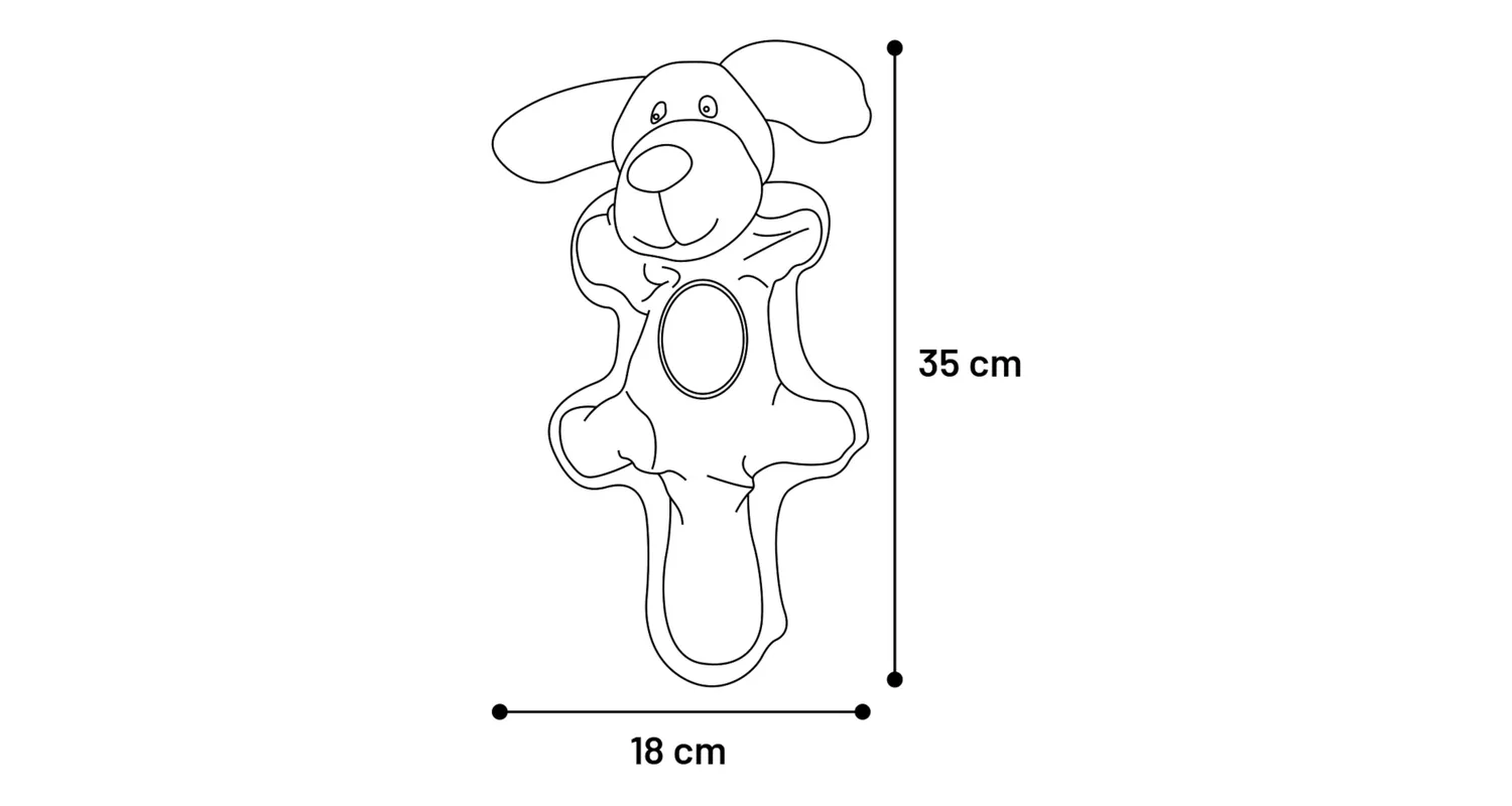 Pluszowy piesek sprawdzi się jako słodki towarzysz drzemek i spokojnego snu - nie jest to zabawka przeznaczona do intensywnych zabaw.