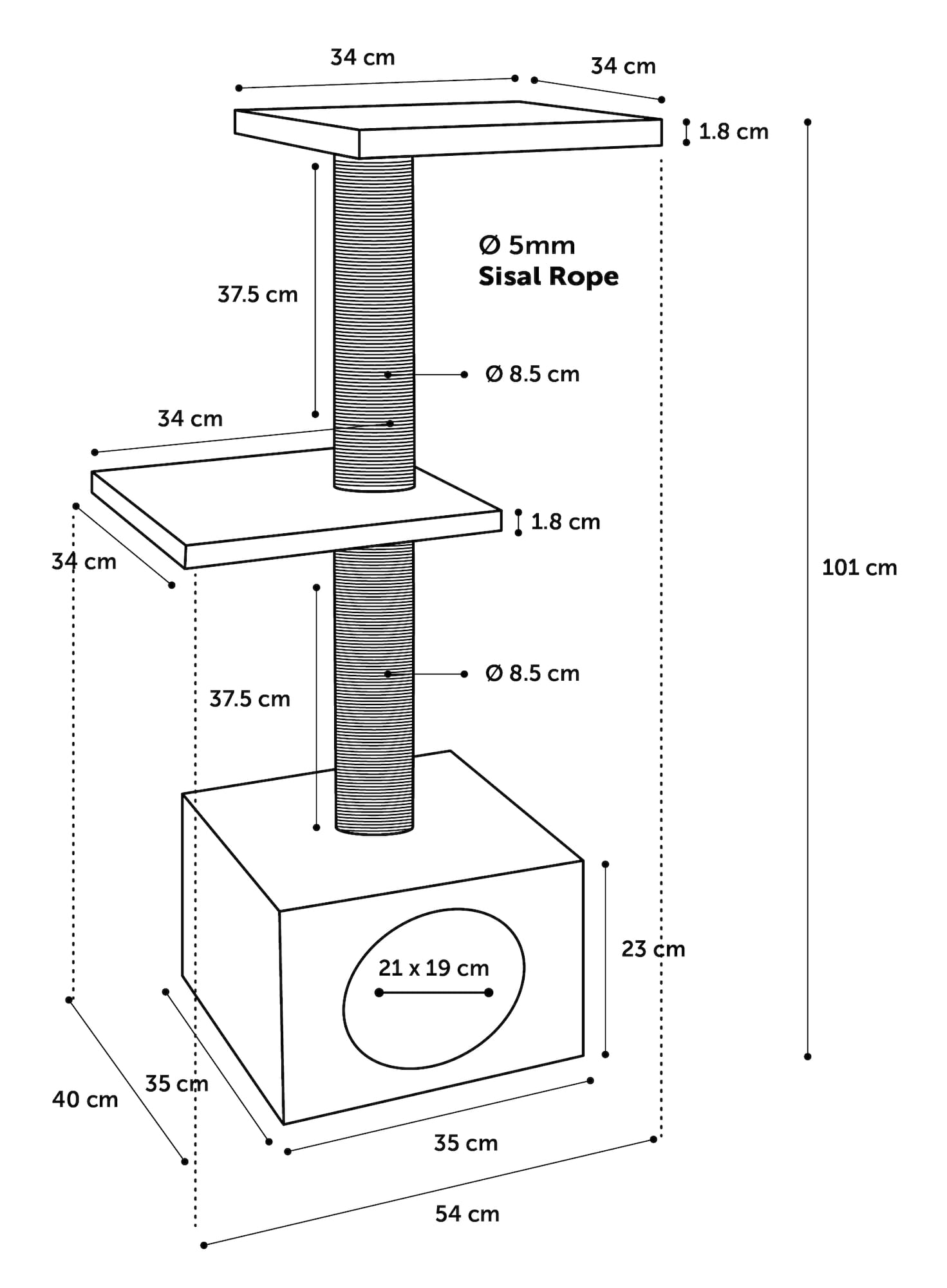 Średnica słupka do drapania: 8,5 cm