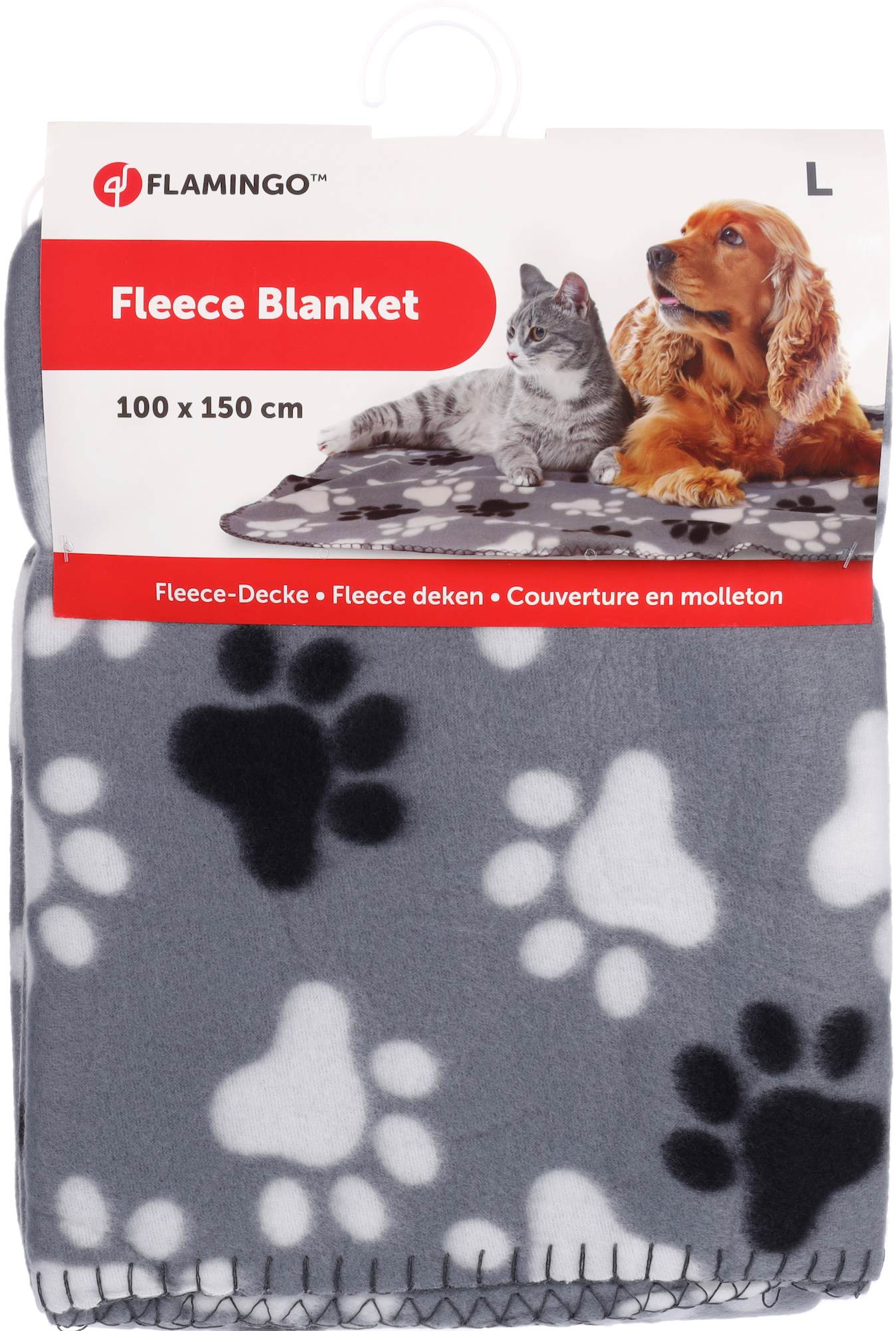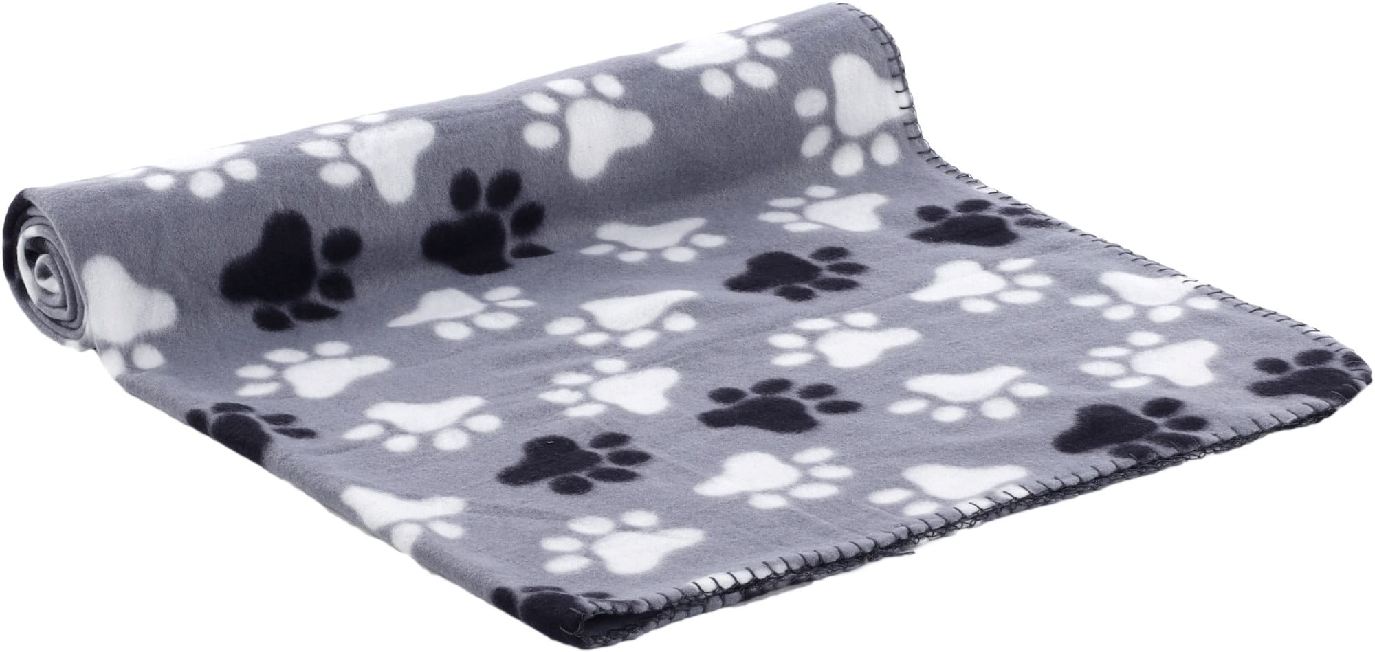 Kocyk dla psa i kota Esma wykonany jest z miękkiego pluszu. Szary odcień oraz nadrukowane łapki będą stanowiły dodatkowy element ozdobny w mieszkaniu.