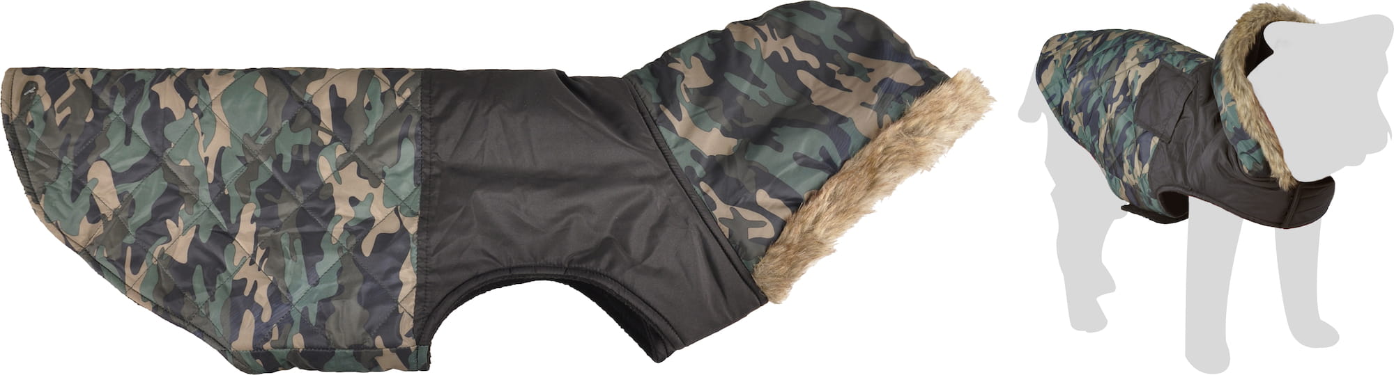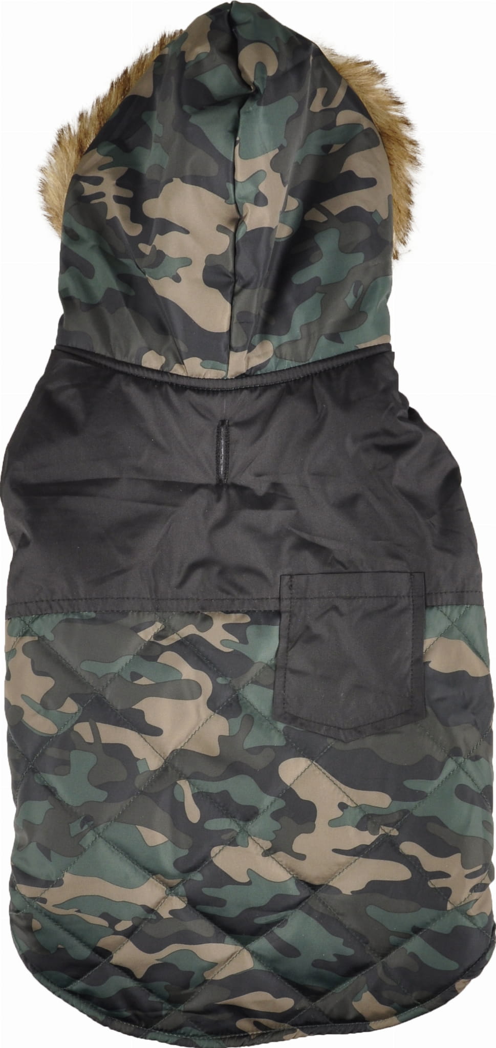 Kaptur ochroni głowę pupila przed wiatrem. Dodatkowo futerkowe wykończenie dodaje mu odpowiedniego charakteru i wpisuje się w modowe trendy. Wykończenia moro dopełniają całości stylizacji.