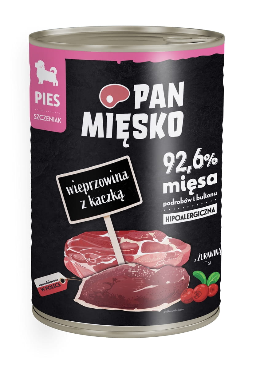 PROMOCJA Pan Mięsko Karma mokra dla szczeniaka Wieprzowina z kaczką 400 g