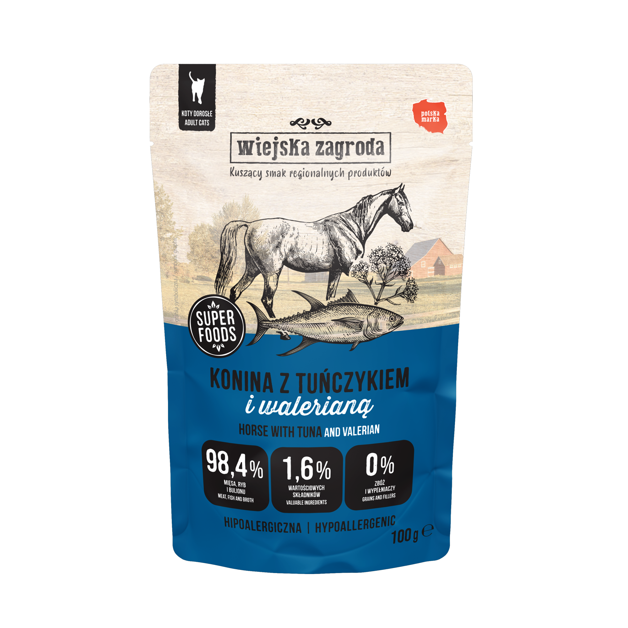 Dlaczego warto wybrać mokrą karmę Konina z tuńczykiem z dodatkiem waleriany Wiejska Zagroda?